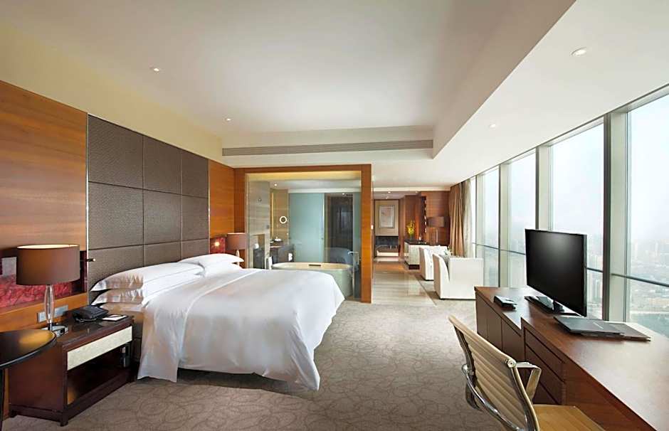Room offers floor-to-ceiling windows with unobstructed views. Features generous work surfaces, free high-speed internet access and luxurious bedding. Room offers access to Executive Lounge access and benefits, including free breakfast, afternoon tea, evening cocktails and hors d'oeuvres.
